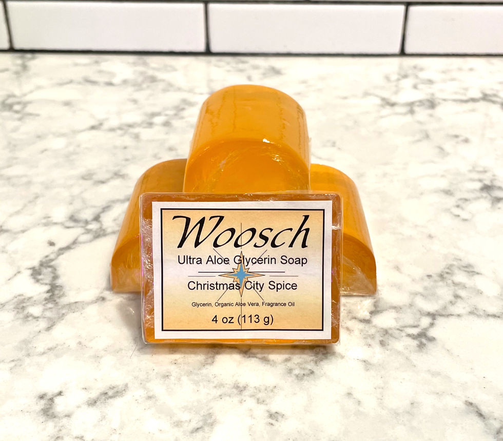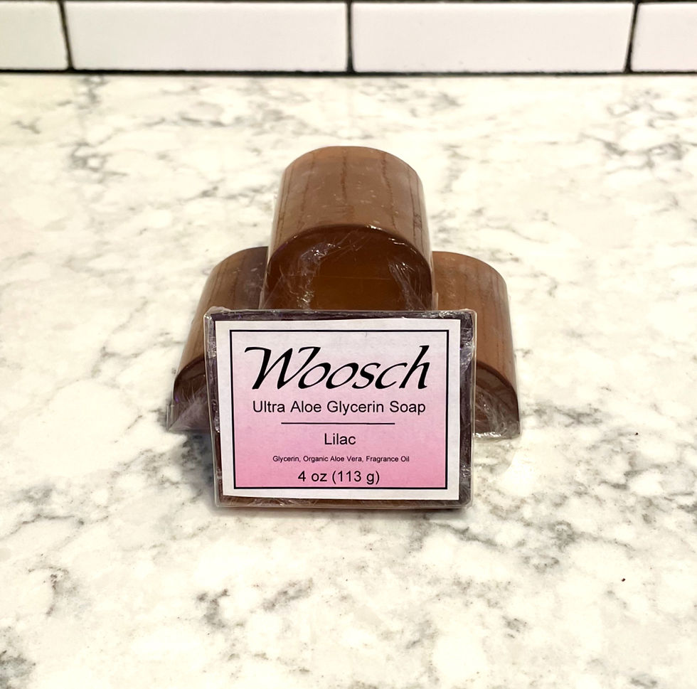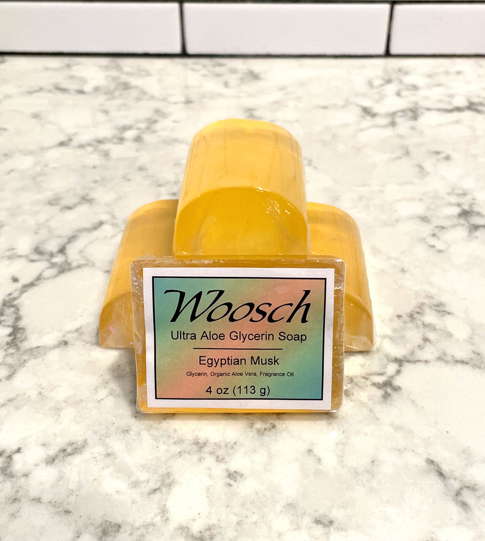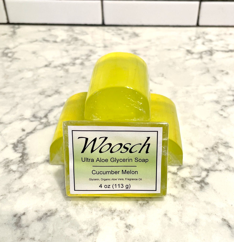 Woosch Aloe Vera and Glycerin Bar Soaps not only look and smell great they also create thick, rich lather. Because we use high quality products our Bar Soaps have fantastic transparency, long lasting scent and an excellent moisturizing effect which leaves your skin with a smooth, pleasant feel. Our gentle cleansing formulation is enhanced by the addition of concentrated Aloe Vera so each use is like a spa treatment. In fact, we add so much Aloe that you'll notice a difference right away! Since our process is Melt and Pour we can add our fragrance and essential oils as well as the Organic Aloe Vera towards the end. The result is that the none of the aloe properties is compromised and the scent is just as fragrant when you have just a sliver left as it was when you unwrapped it.